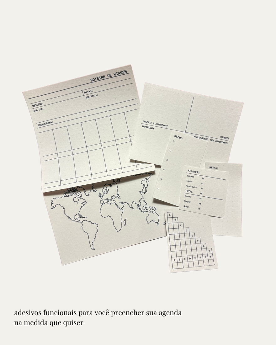 Adesivos funcionais: Feitos para colar em qualquer página, sua agenda vem com adesivos que te auxiliam na sua organização.